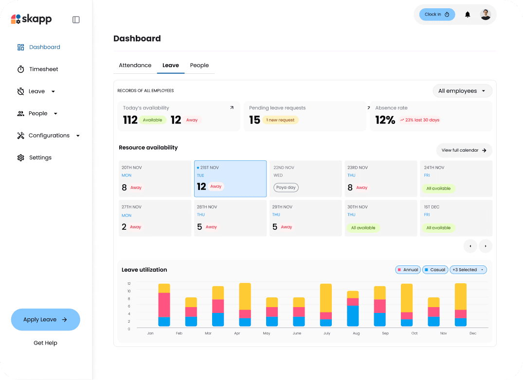 By centralizing leave data and analytics, Skapp gives teams the visibility they need to manage time off proactively rather than reactively.