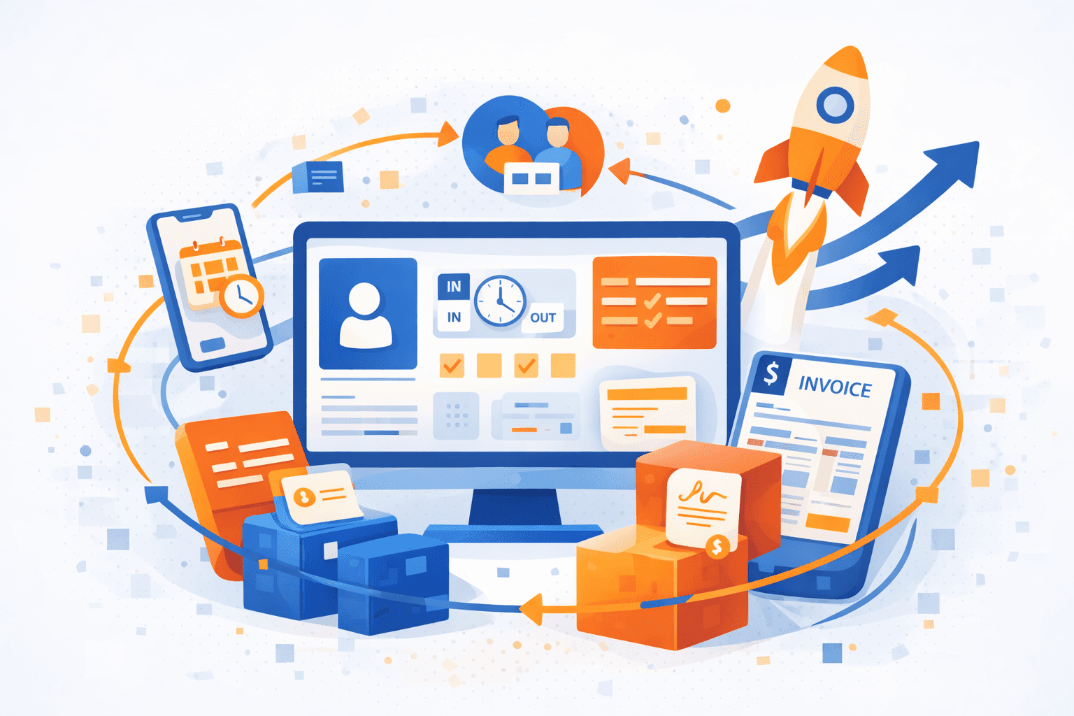 An all-in-one business management platform is a software product that combines several core business functions into a single system. Rather than buying and managing separate tools for HR, project management, time tracking, invoicing, and document signing, a business uses one platform that handles all of these functions and shares data between them.