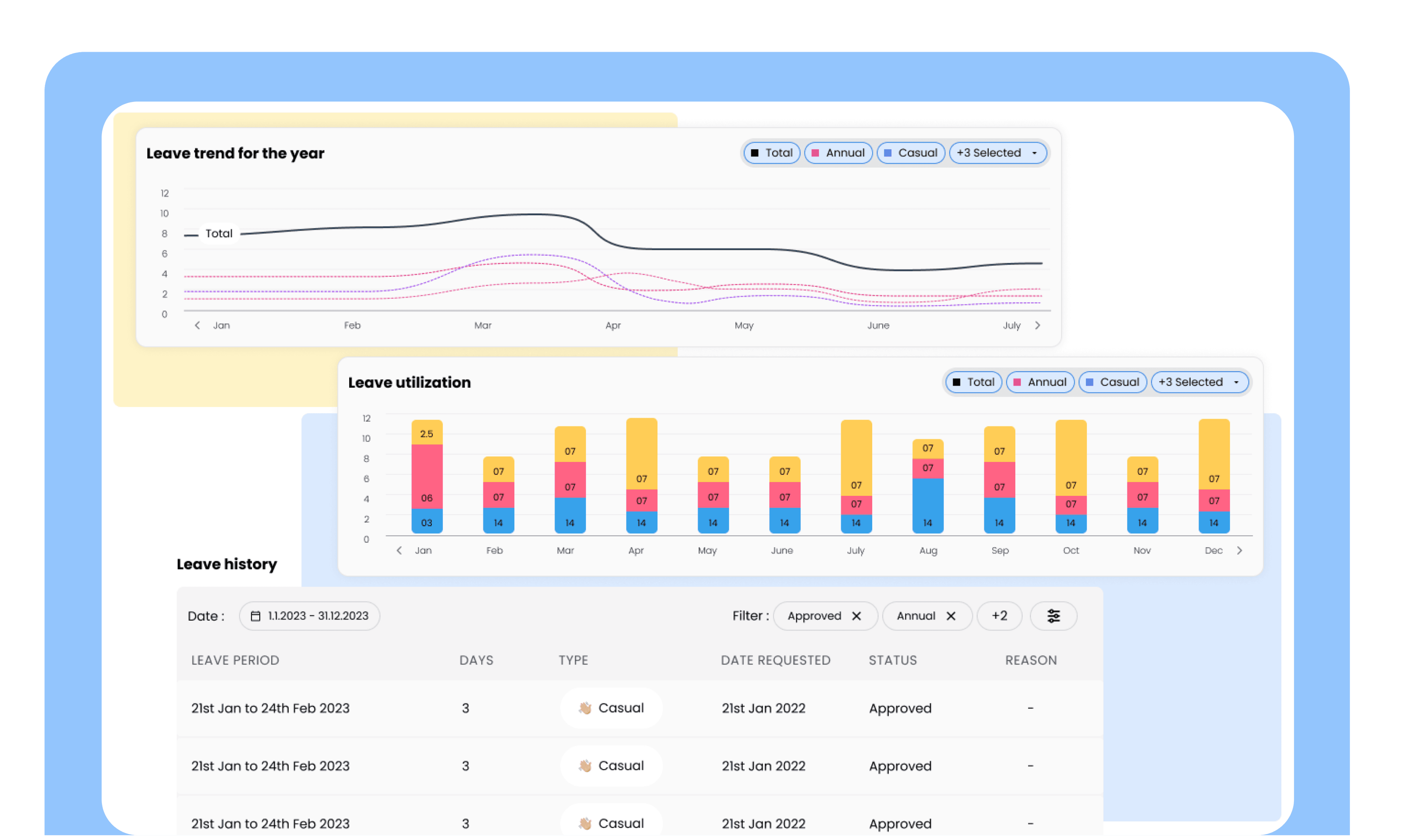 Get clear insights into leave usage and trends across departments or individuals. Access detailed reports to monitor balances, identify patterns, and plan resources effectively.