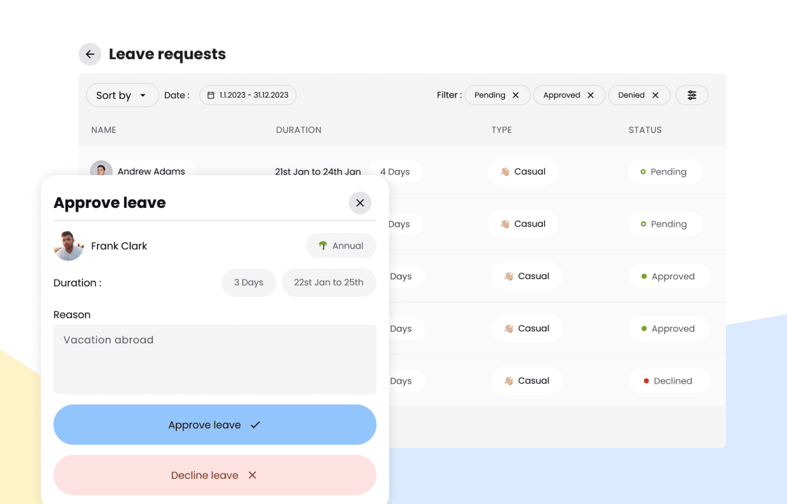 Approve or reject time off instantly